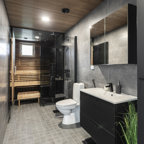 Varusteet: sähkökiuas, LED-valaistus, lattialämmitys
