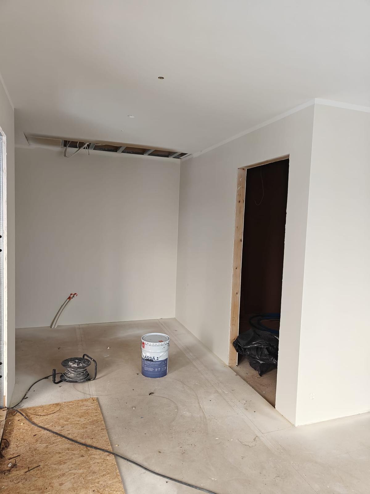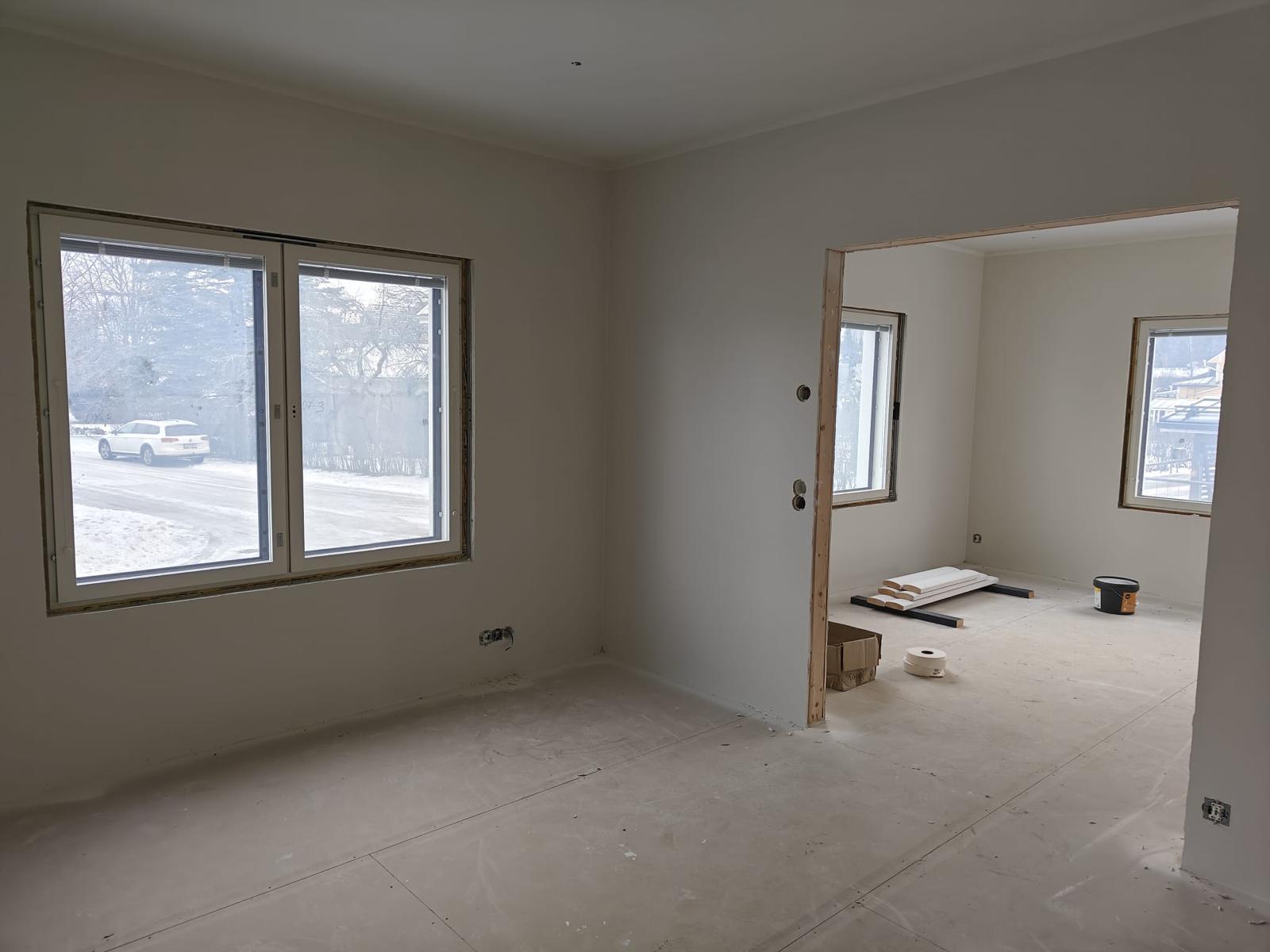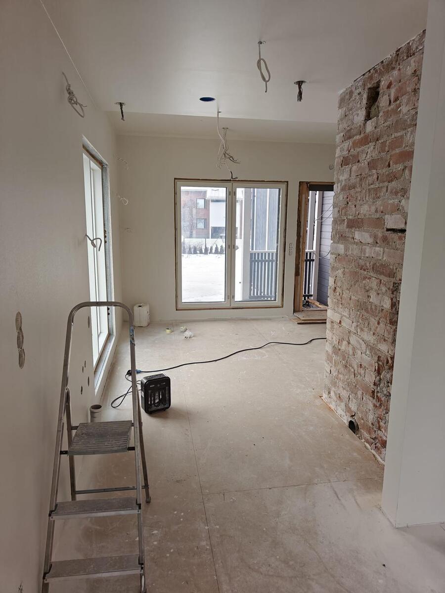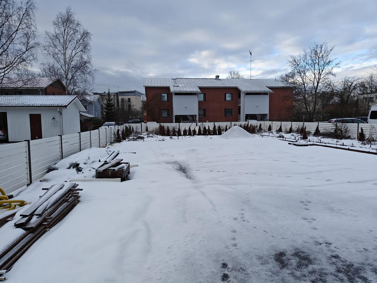 Talossa on olleet lämmöt päällä kokoajan ja se on saatelta suojassa rakennusvaiheessa, sateet ja pakkaset eivät ole aiheuttaneet ongelmia.