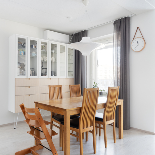 Kauppaan kuuluu myös laadukas ilmalämpöpumppu, joka viilentää asunnon kesähelteillä.