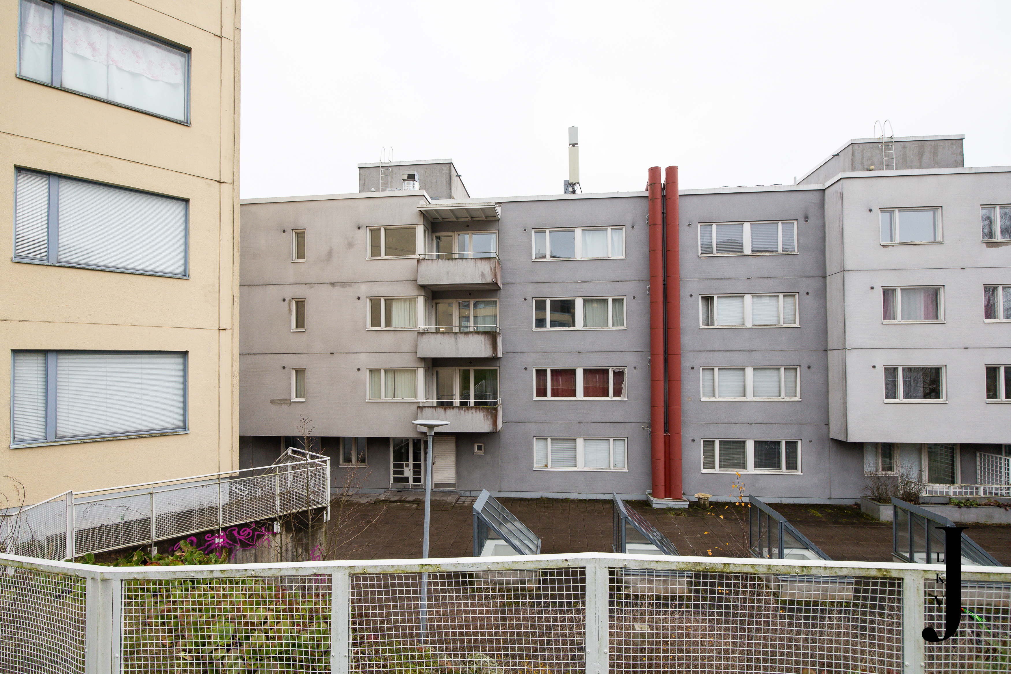 Julkisivun ja parvekkeiden kunnostustöitä.
