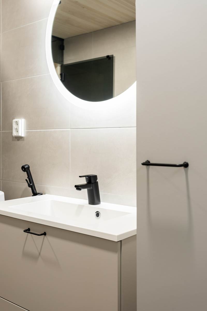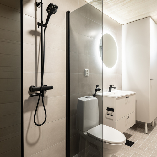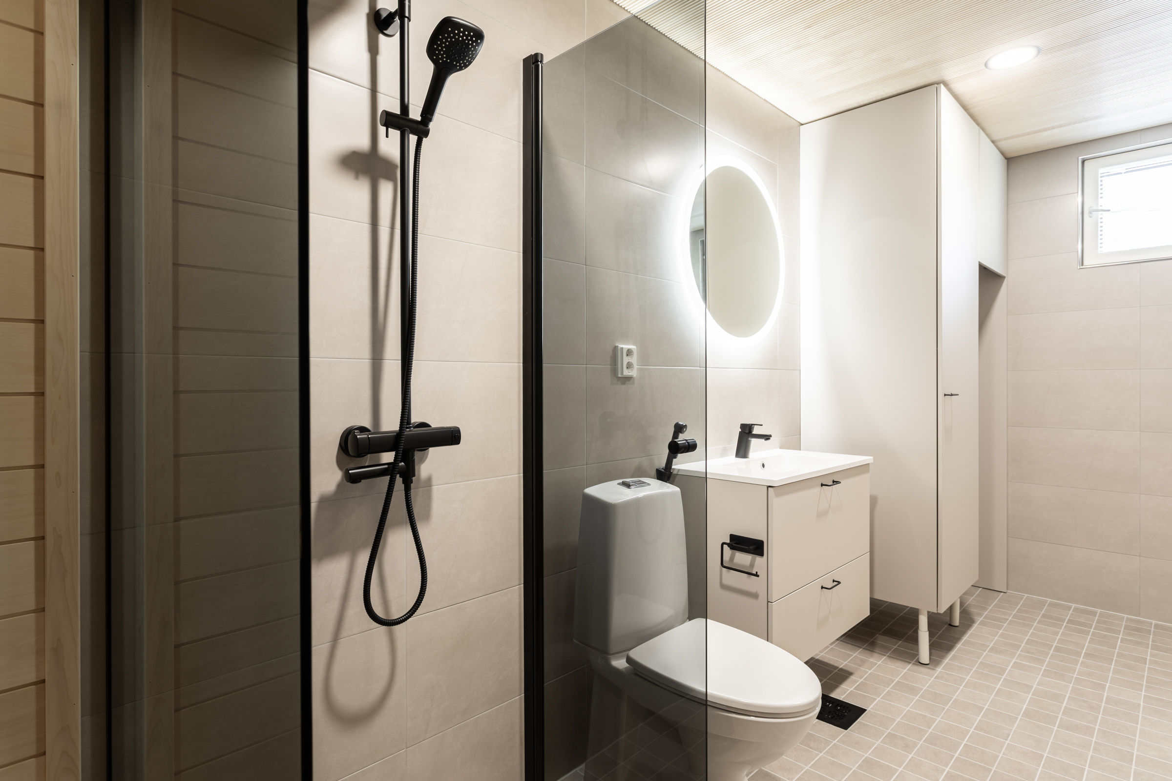 Kylpyhuoneessa käytännöllisyys ja mukavuus kohtaavat: Puustellin säilytyskalusteet ja vesikiertoinen lattialämmitys viimeistelevät modernin ja huolitellun tunnelman. Pihasaappaasi voit riisua omalla terassillasi, joka kutsuu viettämään aikaa ulkona aamukahvista illan tunnelmallisiin hetkiin. Etu- ja takapiha tarjoavat runsaasti tilaa ulkoiluun, vaikka lasten leikeille tai pienen oman puutarhan perustamiseen.