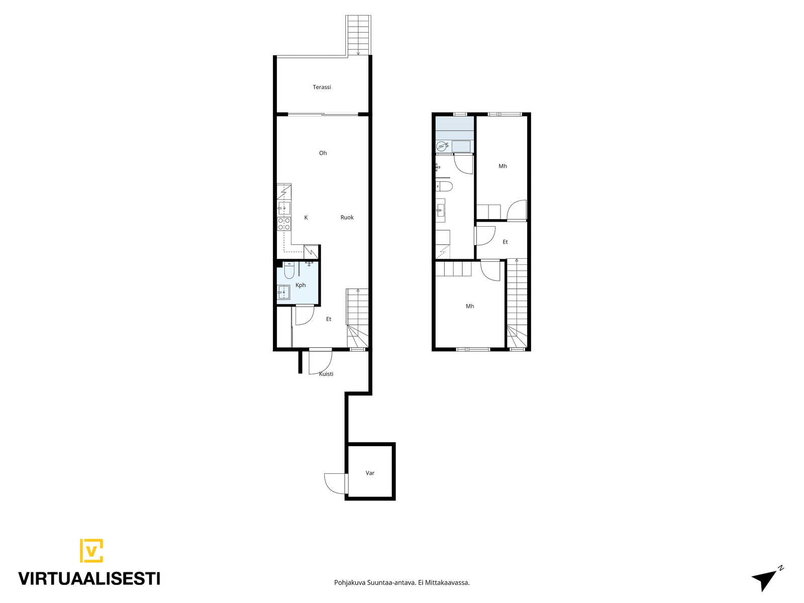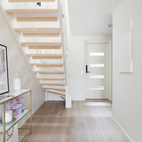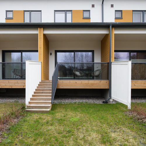 Kylpyhuoneessa käytännöllisyys ja mukavuus kohtaavat: Puustellin säilytyskalusteet ja vesikiertoinen lattialämmitys viimeistelevät modernin ja huolitellun tunnelman. Pihasaappaasi voit riisua omalla terassillasi, joka kutsuu viettämään aikaa ulkona aamukahvista illan tunnelmallisiin hetkiin. Etu- ja takapiha tarjoavat runsaasti tilaa ulkoiluun, vaikka lasten leikeille tai pienen oman puutarhan perustamiseen.