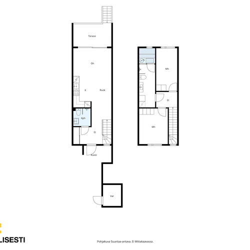 Pinta-alan peruste: Yhtiöjärjestyksen mukainen. Ei tarkistusmitattu. Pinta-ala voi siis olla edellä mainittua pienempi tai suurempi. Huoneiston lisäksi ulkovarasto n 3 m² ja lämmin häkkivarasto n 2,50 m².