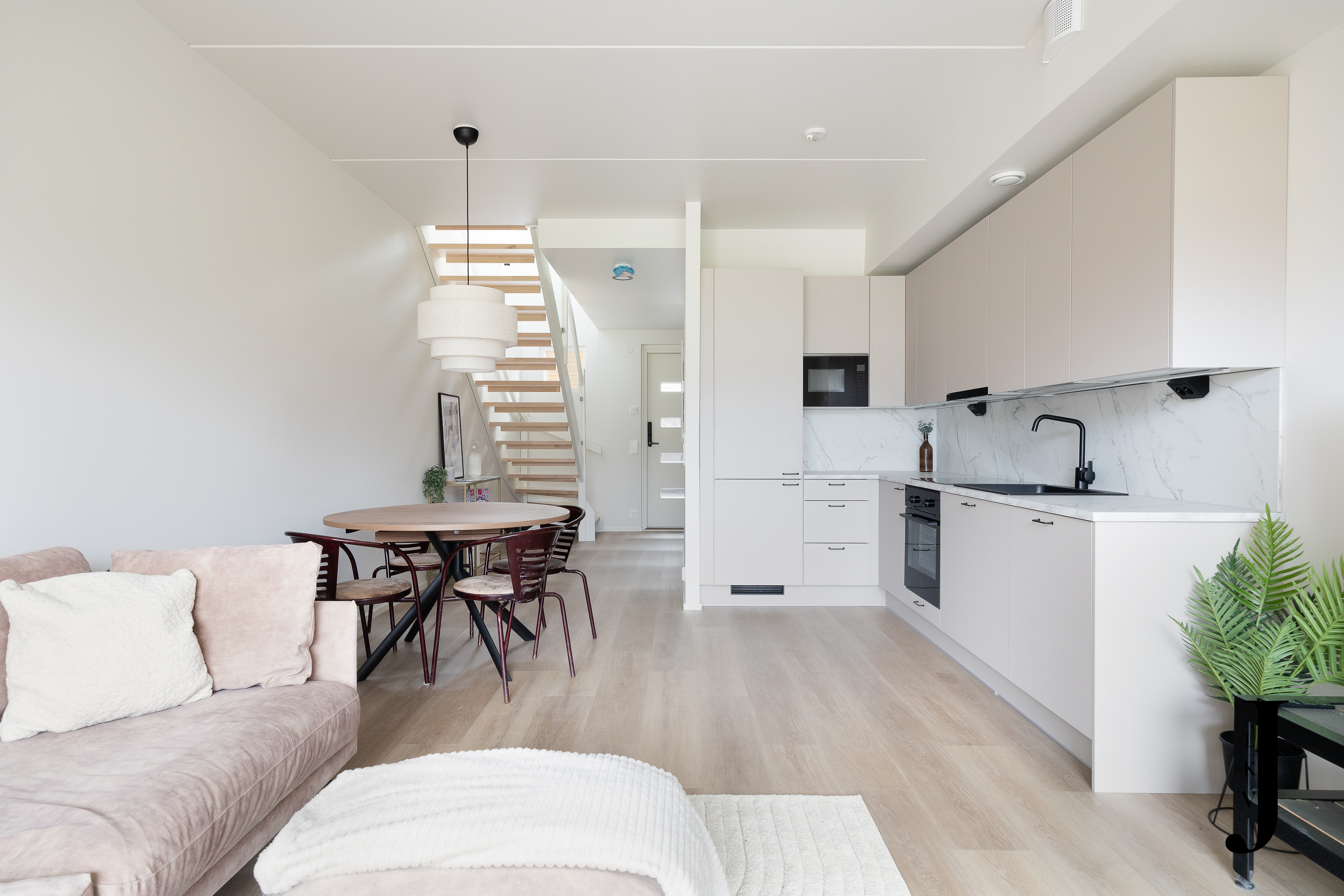 Vuonna 2026 alkuvuodesta valmistuva 71 m² kokoinen koti on suunniteltu vastaamaan perheiden ja pariskuntien tarpeisiin. Kolme huonetta, avara ja hyvin varusteltu Puustellin keittiö sekä oma sauna muodostavat arkea sujuvoittavan ja viihtyisän kokonaisuuden. Keittiön korkealaatuiset kodinkoneet tekevät ruoanlaitosta nautinnon, ja vaaleat, kestävät vinyylilattiat olo- ja makuuhuoneissa tuovat asumiseen sekä helppoutta että tyylikkyyttä. Pesutiloissa ja saunassa laattalattiat ja luonnollisesti Harvian sähkökiuas huolehtivat rentoutumishetkistä.