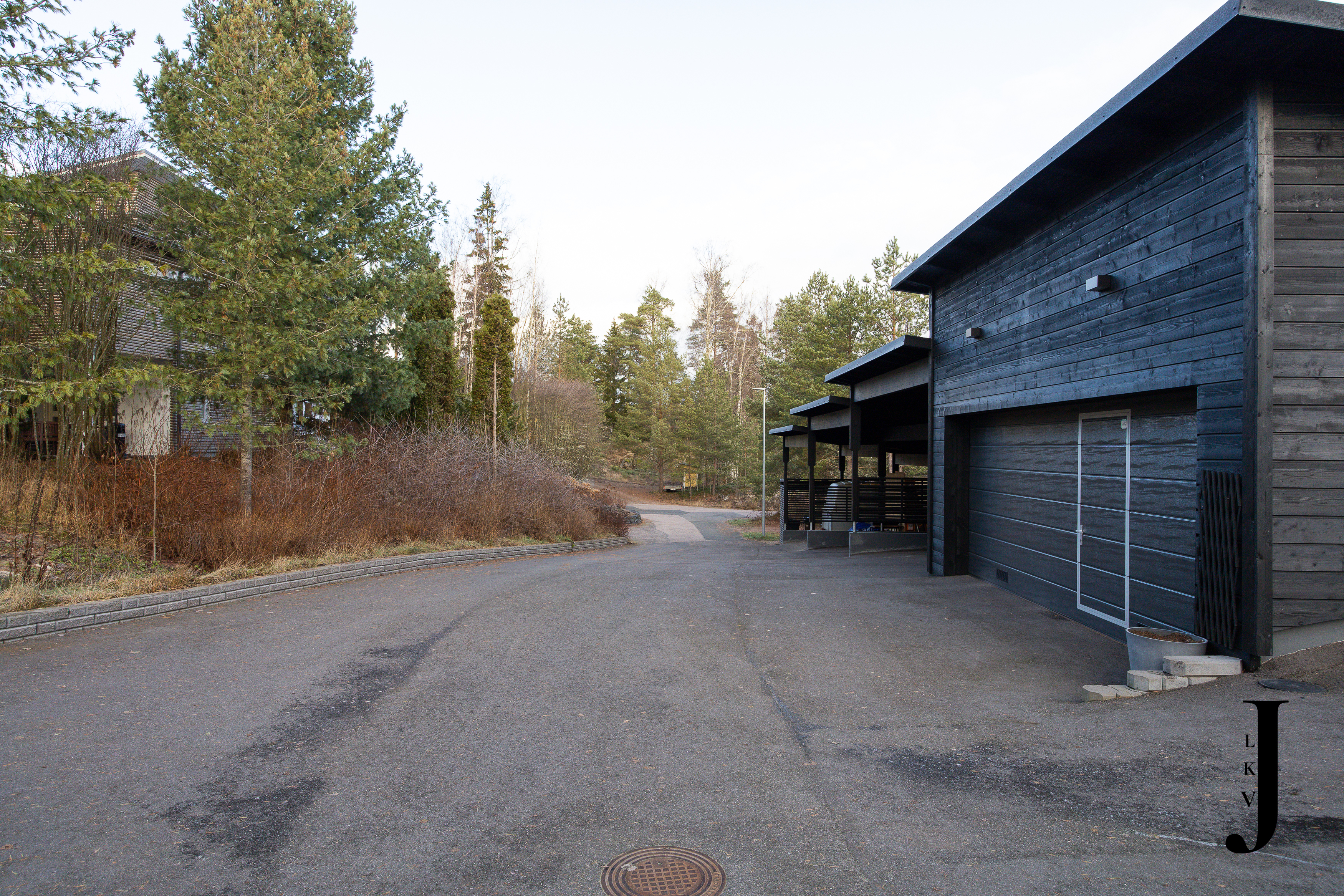 Kuntta, asfaltti, kivetys, pihavalaistus, istutukset, nurmikko