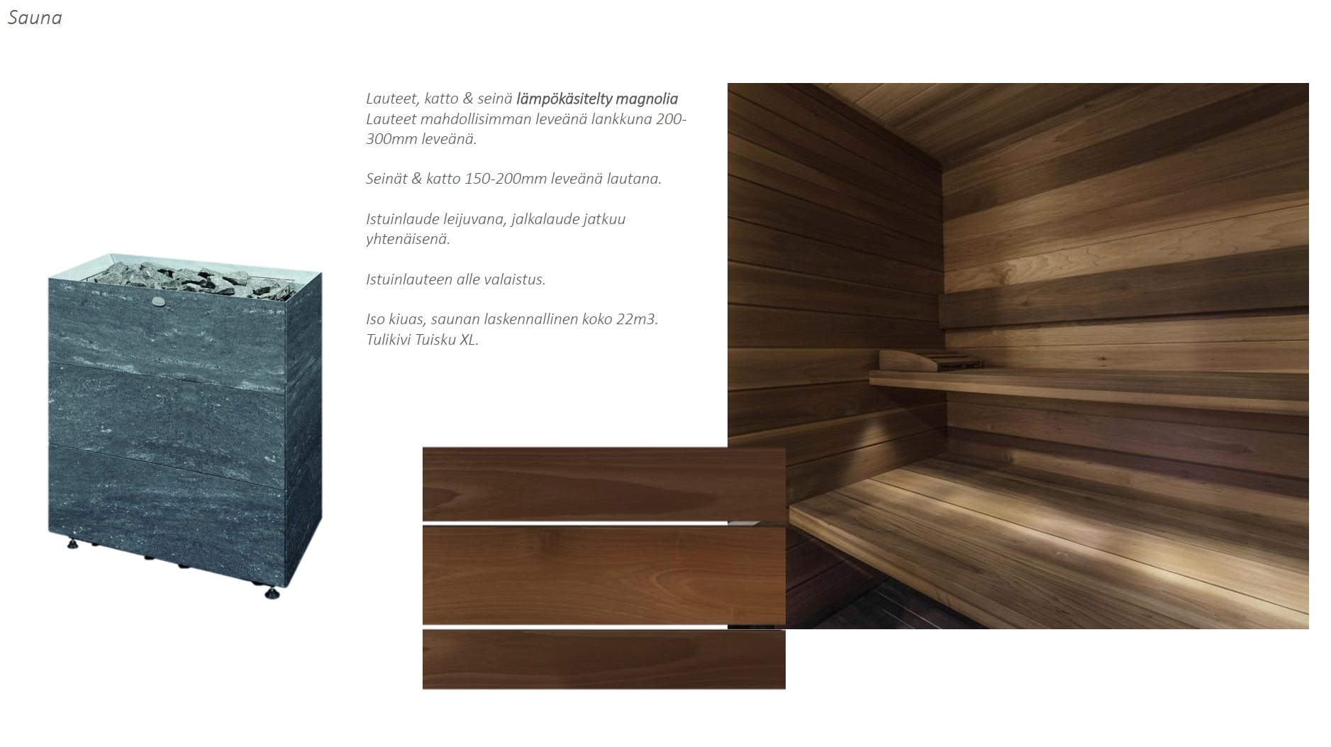 Saunan lauteet, lämpökäsitelty haapa