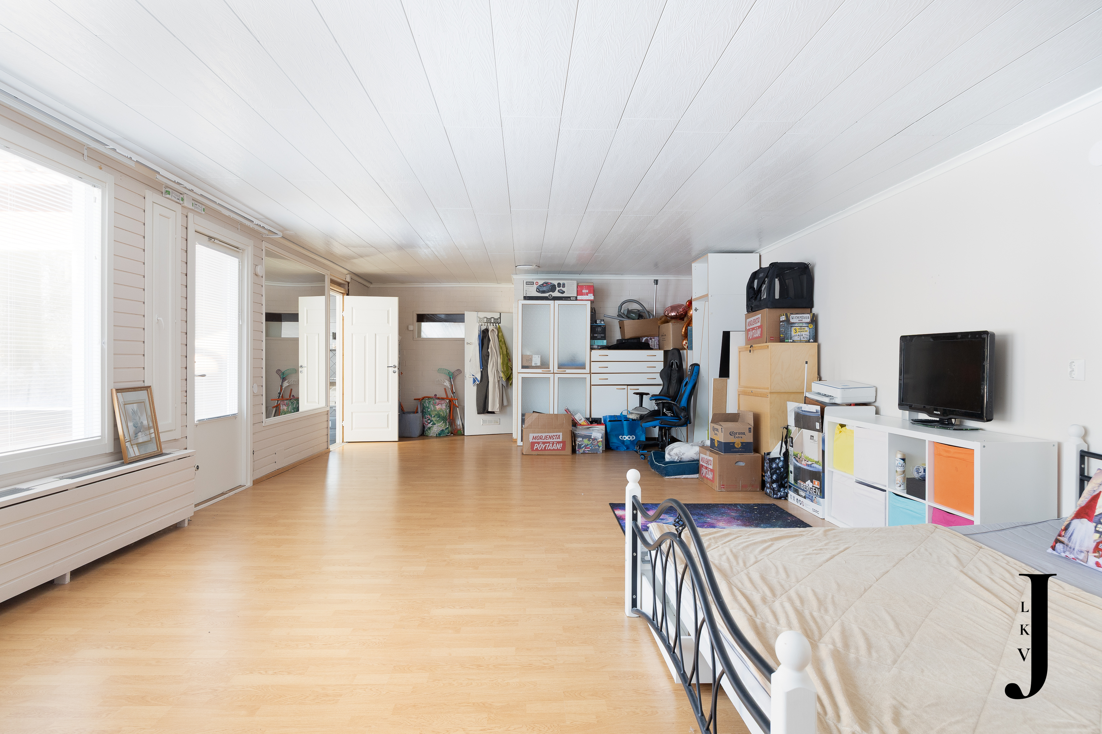Tervetuloa tutustumaan tähän tilavaan, vuonna 1973 valmistuneeseen omakotitaloon, joka on uudistettu kattavasti viime vuosien aikana. Asuinpinta-alaa on 135 m², ja toimiva pohjaratkaisu tarjoaa neljä makuuhuonetta, avaran olohuoneen, keittiön ruokailutiloineen sekä erillisen työhuoneen. Lisäksi talossa on harrastetilaa, kodinhoitohuone, sauna, kaksi wc:tä sekä talon yhteydessä oleva 17 m² autotalli.