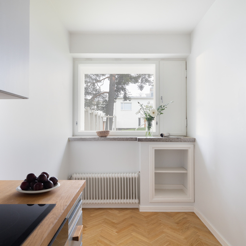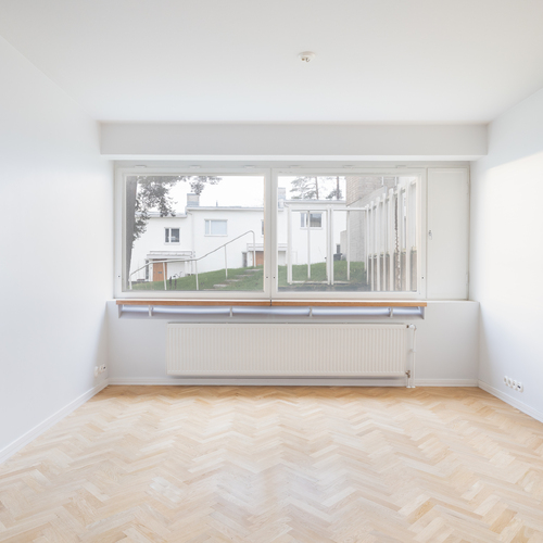 Myydään tilava yksiö 44 m² Vantaan Asunto Oy Aerolassa, Alvar Aallon 50-luvulla suunnittelemassa rivitalossa.