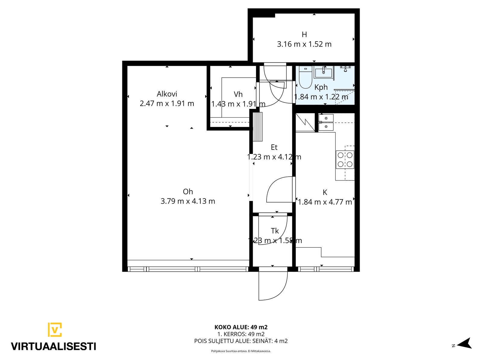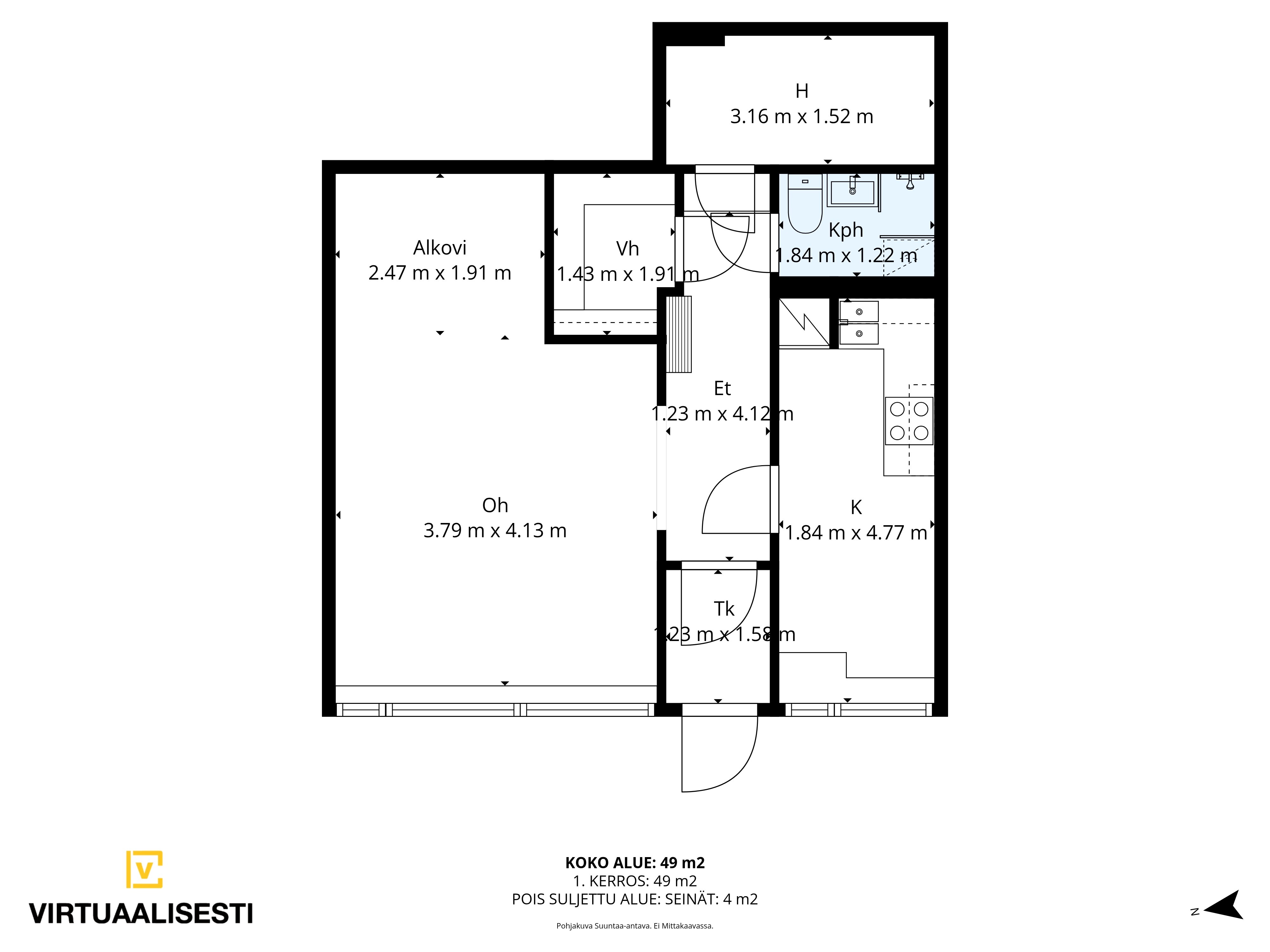 Yksiössä on oma piha, vaatehuone ja noin 5 m² lisähuone, joka sopii moneen käyttöön esimerkiksi koti toimistoksi. Kiinteistö on täysin peruskorjattu vuosina 2019 –2021, säilyttäen Aallon alkuperäisen ilmeen yhdistettynä moderniin varusteluun, kuten Siemensin kodinkoneisiin.